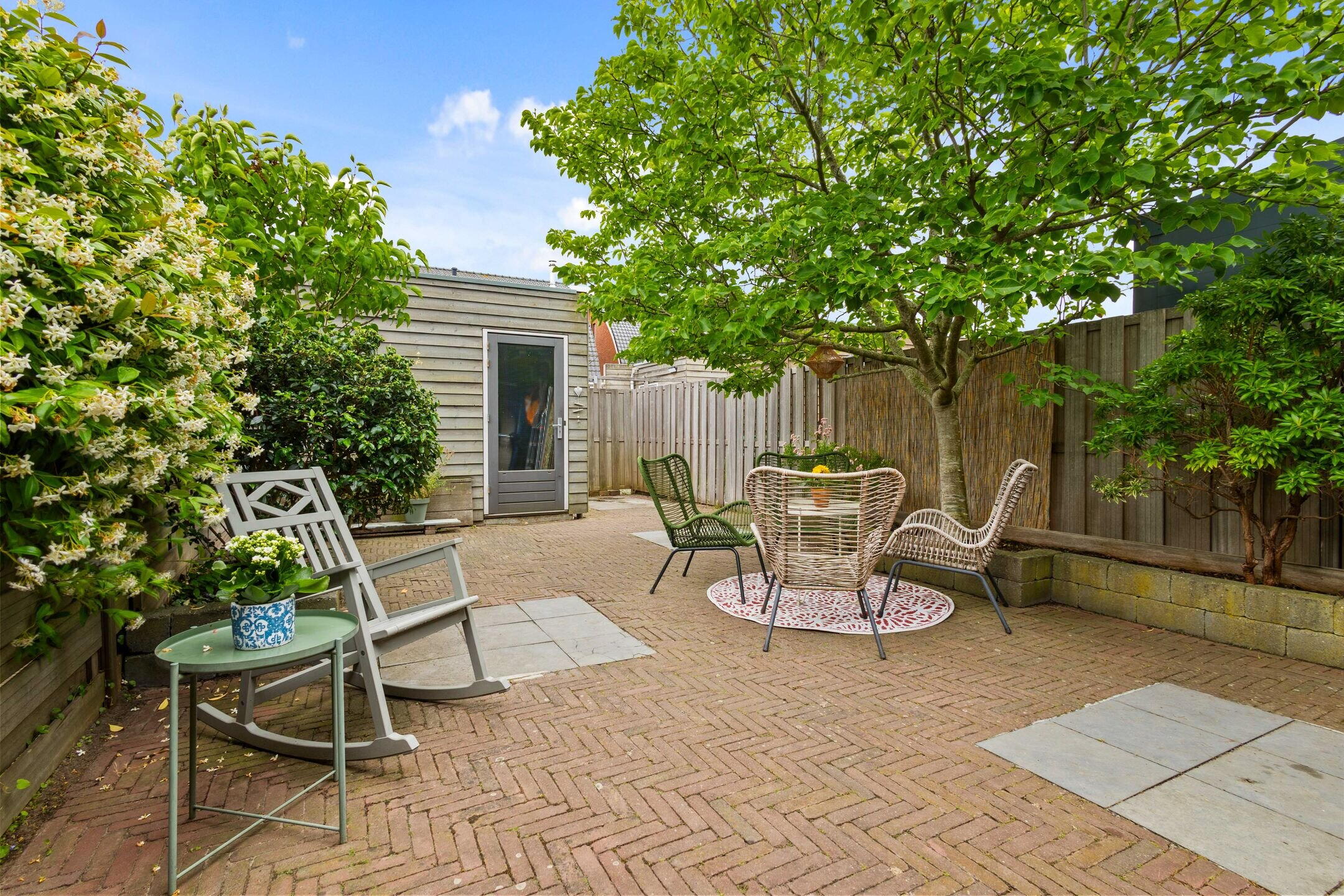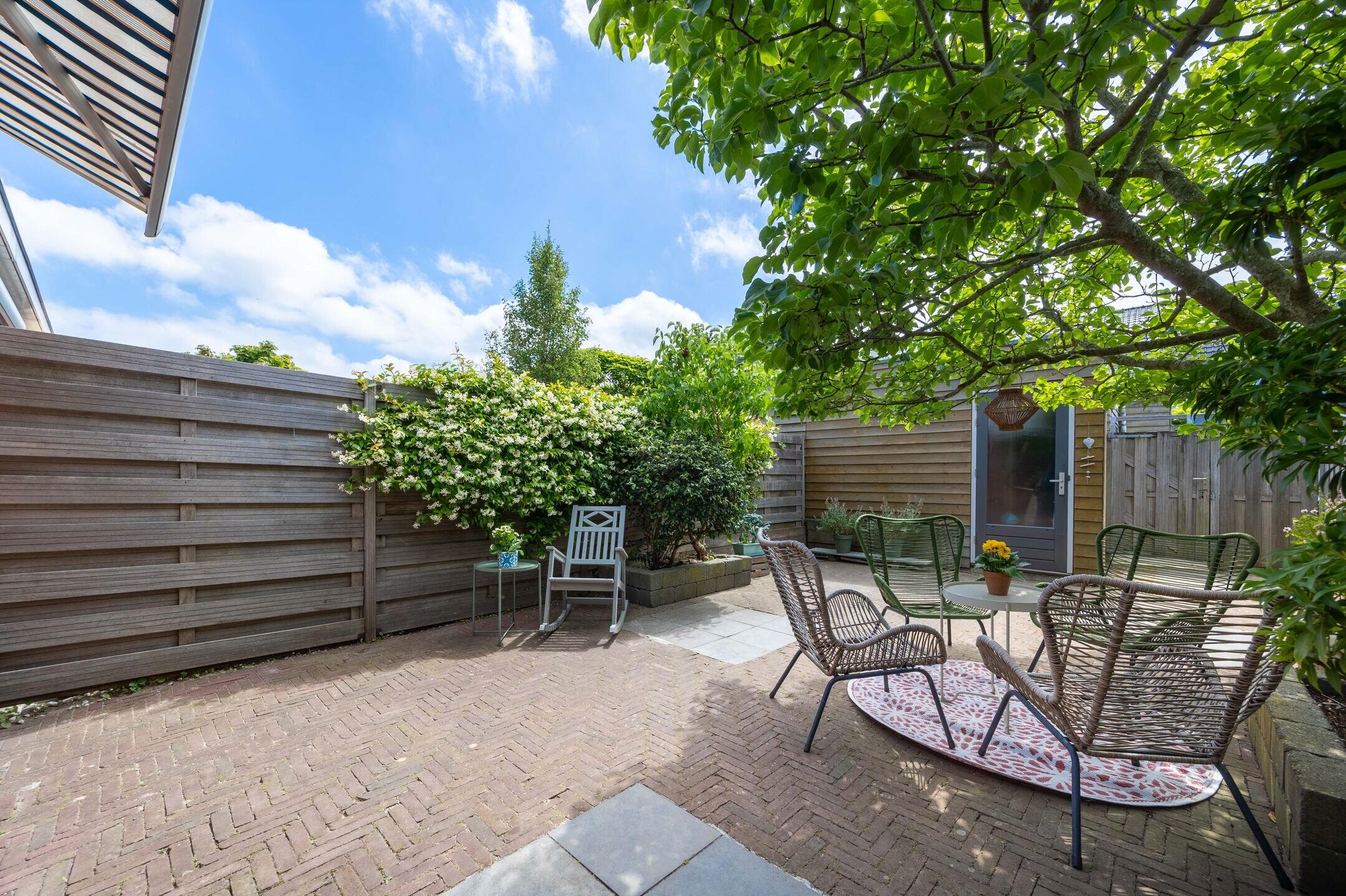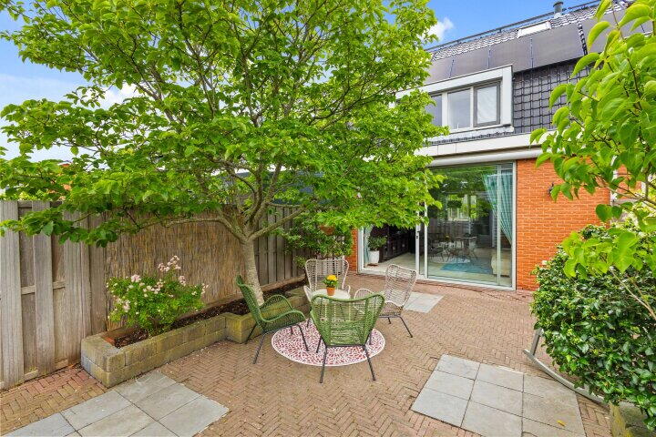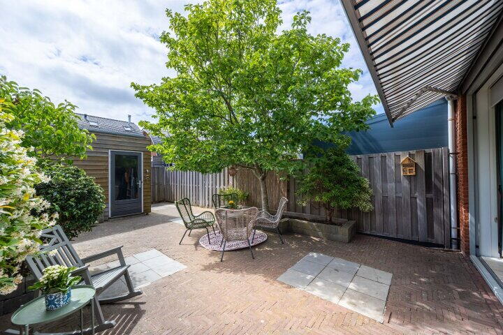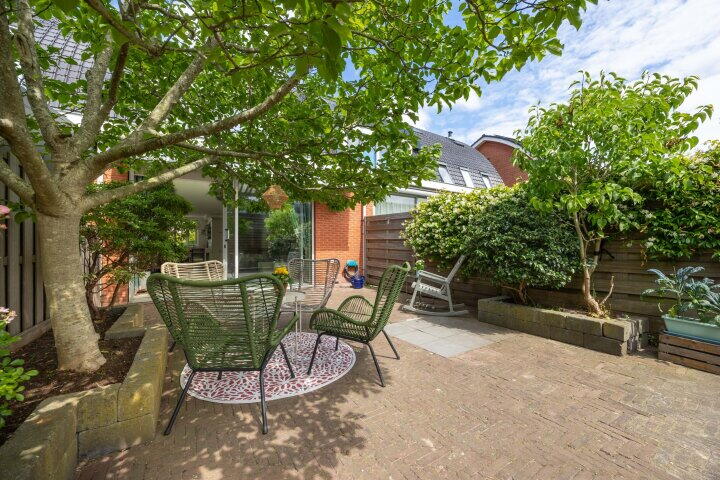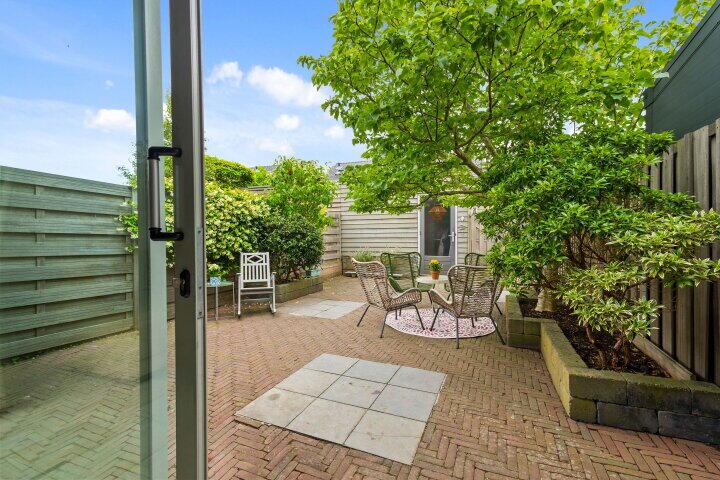 De achtertuin, gelegen op het zonnige zuidwesten, is duidelijk met veel liefde aangelegd. Smalle klinkers, robuuste stenen borders met daarin prachtige boompjes, waaronder een schitterende Magnolia, zorgen voor een nonchalante, romantische uitstraling. Achterin de tuin vindt u de houten berging, die u via het gemeenschappelijke paadje achterom kunt bereiken.