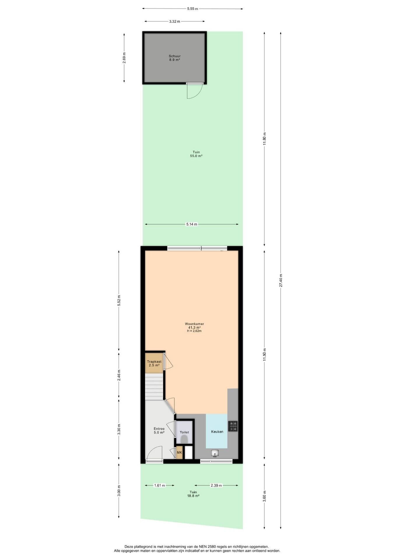 - 65 m² (11,80 meter diep en 5,55 meter breed)